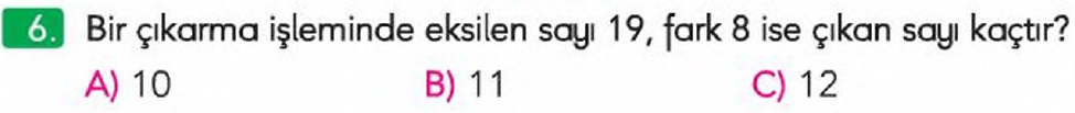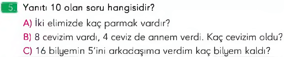1. Sınıf Matematik Ara Değerlendirme Testi Çöz