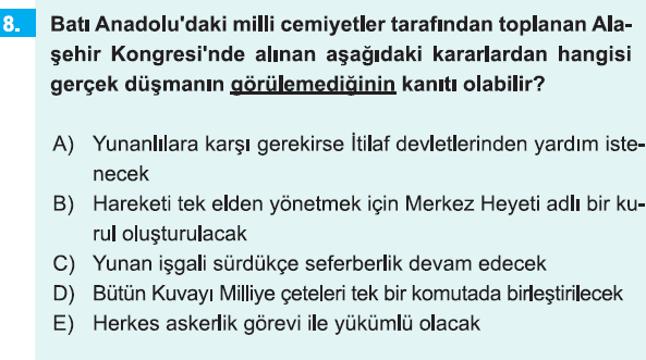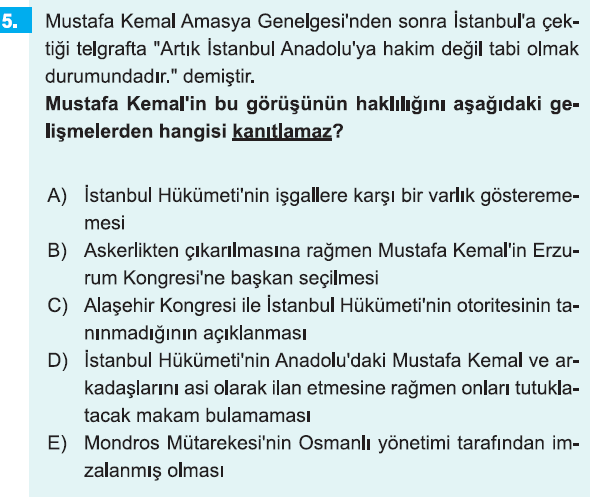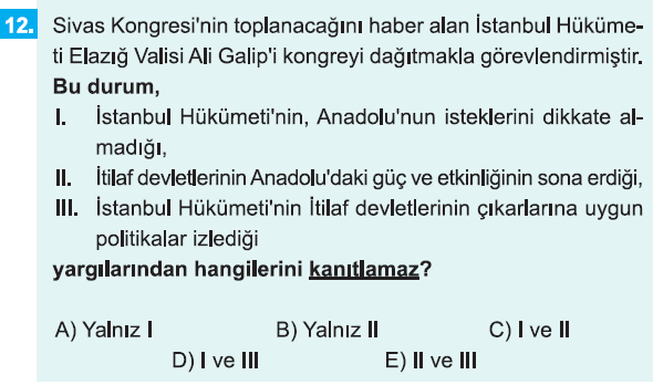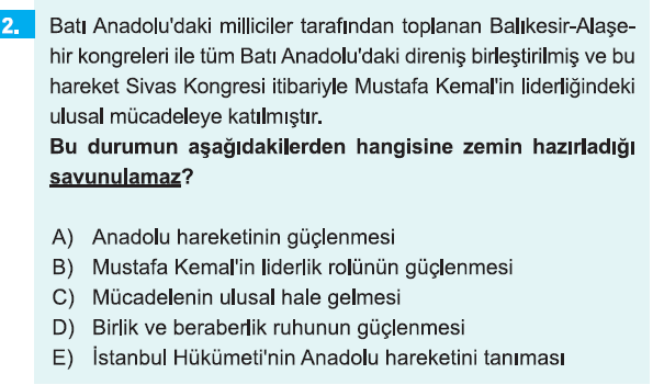 11. Sınıf İnkılap Tarihi 2. Ünite Kurtuluş Savaşı Hazırlık Dönemi Testi Çöz-14