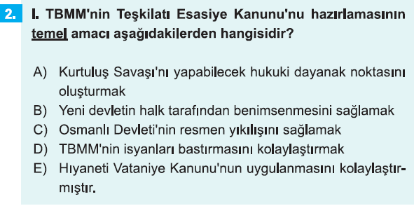 11. Sınıf İnkılap Tarihi 2. Ünite Kurtuluş Savaşı Hazırlık Dönemi Testi Çöz-24