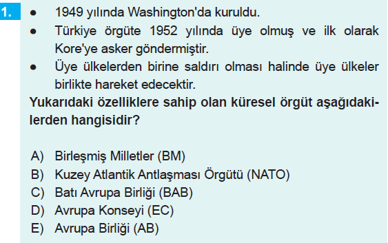 12. Sınıf Coğrafya 9. Bölüm Türkiye'nin Uluslararası Örgütlerle İlişkisi Testi Çöz-1