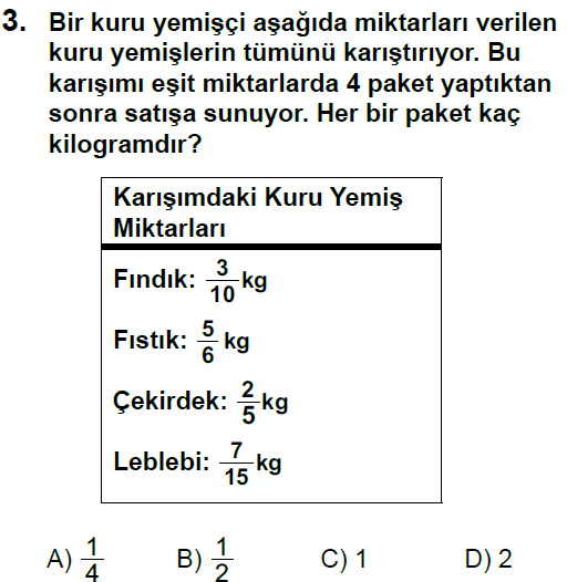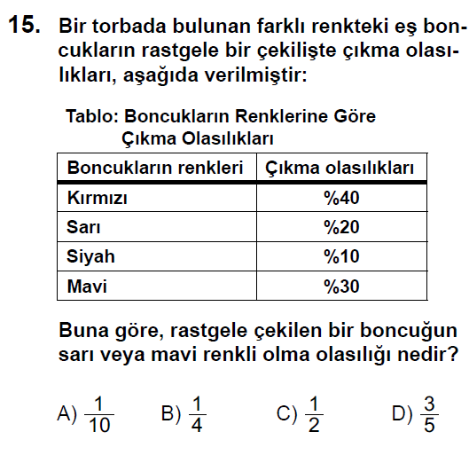 2011 Bursluluk 7. Sınıf Matematik Testi Soruları Çöz
