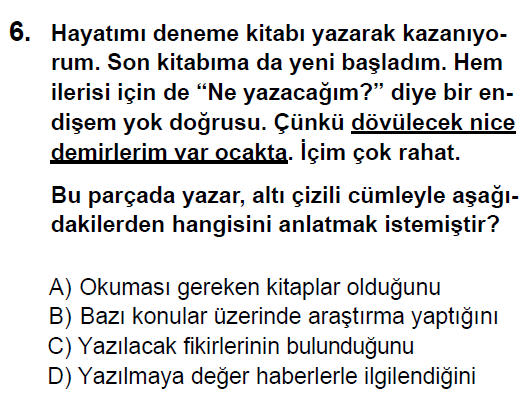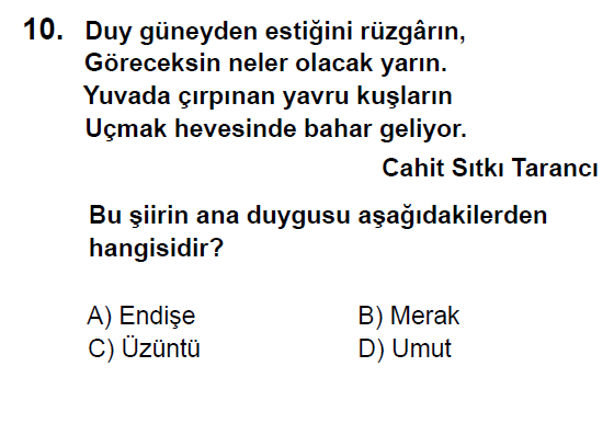 Sınavı henüz tamamlamadınız. Eğer sayfadan ayrılırsanız, verdiğiniz yanıtlar kaybolacak!
