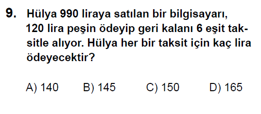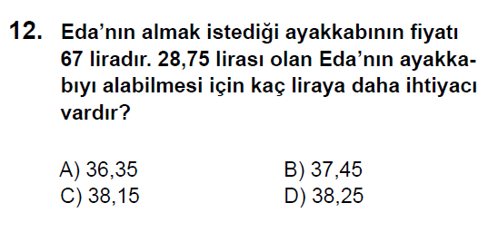 2013 Bursluluk 5. Sınıf Matematik Testi Soruları Çöz
